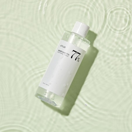 ANUA Heartleaf 77% Soothing Toner is a light, fragrance-free toner designed for daily care of sensitive skin, prone to irritation, redness and dryness. Its formula is based on 77% heartleaf extract ( Houttuynia Cordata ), known for its anti-inflammatory, antioxidant and soothing properties. The tonic absorbs quickly, leaving no sticky feeling, and effectively prepares the skin for the next steps of care.