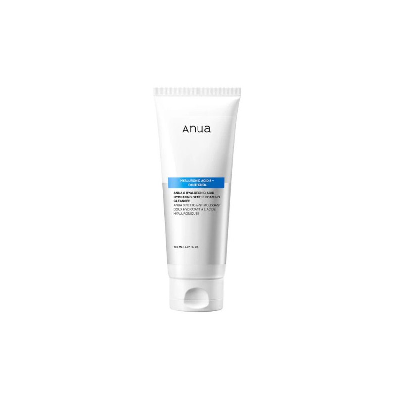 ANUA 8 Hyaluronic Acid Hydrating Gentle Foaming Cleanser is a gentle, creamy foaming cleanser for daily facial cleansing that effectively removes impurities, makeup, and excess sebum while intensely moisturizing the skin. Its formula, based on eight types of hyaluronic acid, panthenol, and zinc PCA, supports the skin's natural protective barrier, soothes irritation, and regulates sebum production. The product is fragrance-free and suitable for all skin types, including sensitive skin.