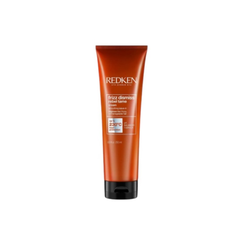 A professional, leave-in smoothing cream that effectively controls frizz and protects hair from humidity and heat. Redken Frizz Dismiss Rebel Tame was created for unruly, coarse, and frizz-prone hair. The lightweight yet nourishing formula smooths the hair's surface, facilitates styling, and provides long-lasting control. The cream also acts as a thermal protector, protecting hair during blow-drying and styling with a straightener or curling iron. It's ideal for wavy, curly, and straight hair that reacts to humidity and loses its smoothness throughout the day.