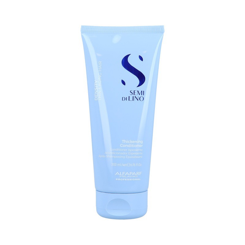 Density Conditioner Low Conditioner Semi -Lino Alfaparf Milano is designed for thinning and mature hair, increases density and revitalizes hair fiber, providing them with a healthier, younger and fuller look. The conditioner contains Filler Complex , a complex of amino acids and peptides that, acting from the inside and outside of the hair fiber, fills and thickens thinning hair that has lost its natural volume. Amino acids penetrate deep into the hair fiber, nourishing and strengthening its structure, thanks to which the hair regains a healthy appearance. The peptide creates a protective barrier on the surface of the hair, and thanks to its antioxidant properties, it affects the health of the scalp, ensuring younger looking hair.