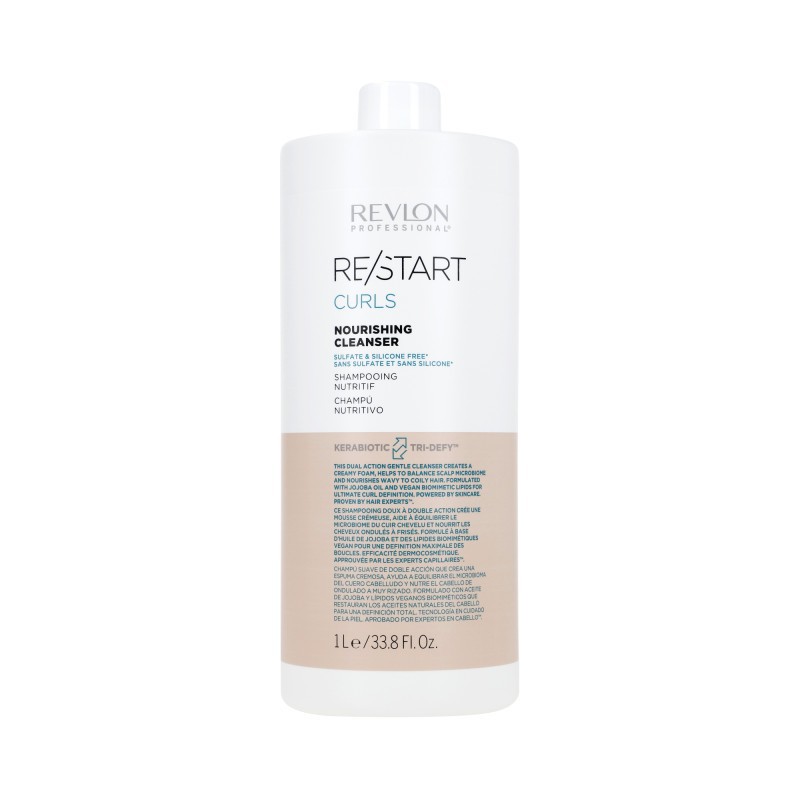REVLON RE/START CURLS is a moisturizing shampoo designed specifically for curly, wavy and frizzy hair. Its gentle formula, free from silicones and sulfates, effectively cleanses the hair and scalp while protecting the natural moisture balance.