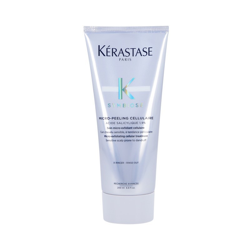 KERASTASE SYMBIOSE is an innovative product designed specifically for scalp care. This gentle peeling micro-exfoliates the scalp, removing dead skin cells, excess sebum and all impurities. Thanks to its unique formula and carefully selected ingredients, SYMBIOSE helps maintain a healthy balance of the scalp, bringing relief to irritated skin and contributing to improving the overall condition of the hair. This product contains Pirokton olamine , a substance with antifungal properties that helps fight yeast and bacteria that contribute to scalp problems. Bifidus , known for its probiotic properties , supports the skin's natural flora, bringing relief to irritated skin and helping to maintain its balance. Salicylic acid at a concentration of 1.9% has a soothing and antibacterial effect, helping to cleanse the scalp and soothe any irritations.