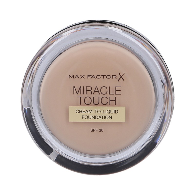 Foundation uit de Max Factor lijn Miracle Touch is gemaakt om de huid een mooie dekking te geven en tegelijkertijd te hydrateren. De foundation vermindert fijne lijntjes en maakt de teint egaal en glad.