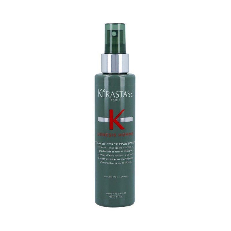 KERASTASE GENESIS HOMME DE FORCE EPAISSISANT is meer dan alleen een spray. Het is een hulpmiddel dat structuur geeft aan het haar, de textuur definieert en het haar voller, glanzend en gezonder maakt. Het werkt als een geheim stylingelement dat karakter en individualiteit toevoegt aan je kapsel. De spray is extreem makkelijk in gebruik, waardoor je het snel en effectief kunt stylen en een spectaculaire look krijgt.