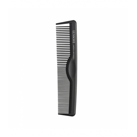 Met de Lussoni CC 100 kam kun je dicht haar effectief en snel kammen tijdens een knipbeurt. Het kleine formaat is ideaal voor dagelijks gebruik. Twee soorten tanden: smalle tanden om door de dunnere en kortere delen van het haar te kammen en wijd uit elkaar staande tanden voor het trimmen van dikke snorren en baarden.