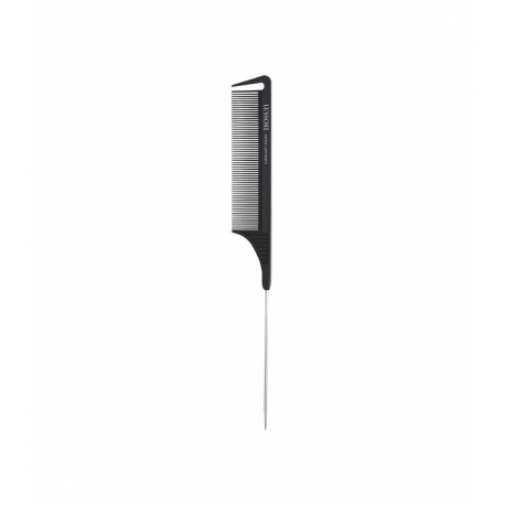The Lussoni PTC 306 comb was designed to separate hair into strands. It is particularly useful for permanent waving treatments. The fine metal tail precisely separates hair into thin strands. Small, narrowly spaced teeth thoroughly comb hair strands, and their rounded tips are gentle on the scalp.This model has a separate tooth at the end for separating hair.