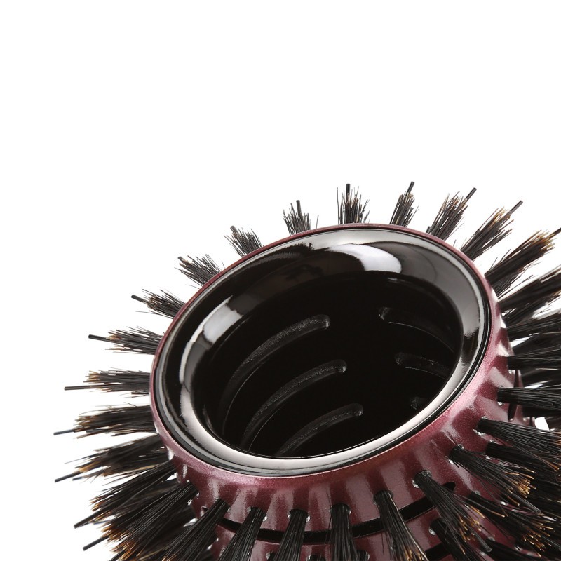 De borstel met een diameter van 65 mm werkt goed in combinatie met een föhn. De punt van de föhn kan in de holle buis aan de bovenkant worden gestoken voor een snellere styling. De borstel is perfect voor heel lang en heel dik haar.