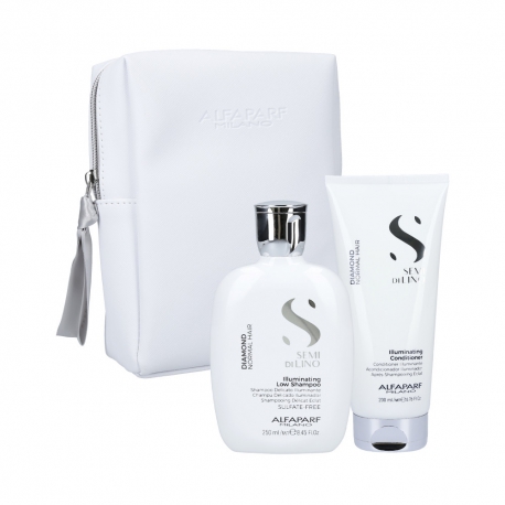 Alfaparf Semi Di Lino Diamond Holiday Set comprises two illuminating cosmetics: Shampoo and Conditioner for normal, lacklustre, dry hair. The set is perfect for the care of colour-treated hair.