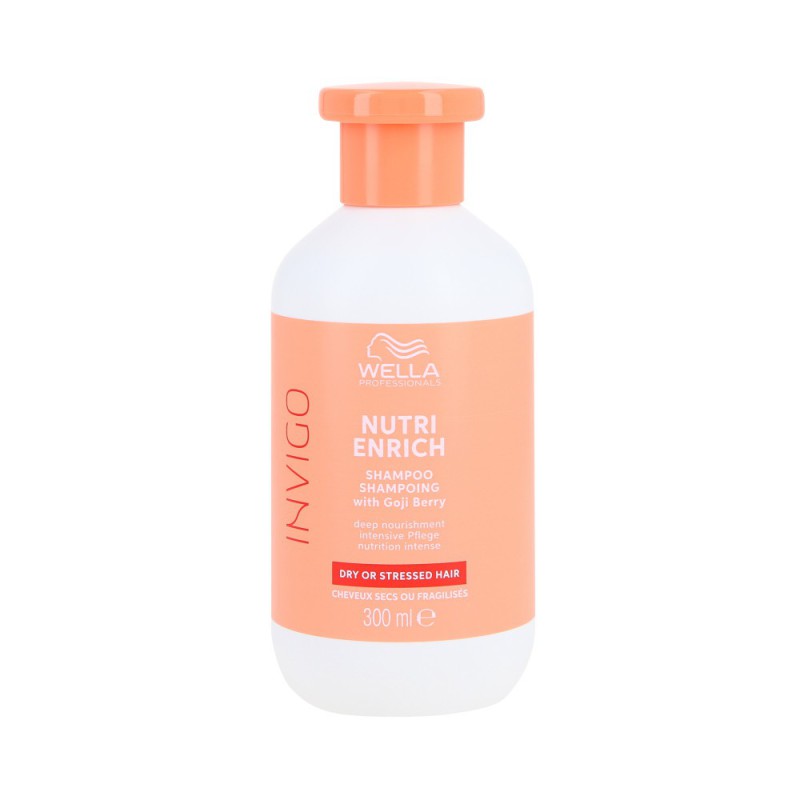 Wella Professional Invigo Nutri-Enrich shampoo contains the Nutri-Enrich-Blend formula, rich in oleic acid, panthenol, goji berries and vitamin E, which provides essential minerals, peptides and vitamins, leaving the hair nourished and moisturized.