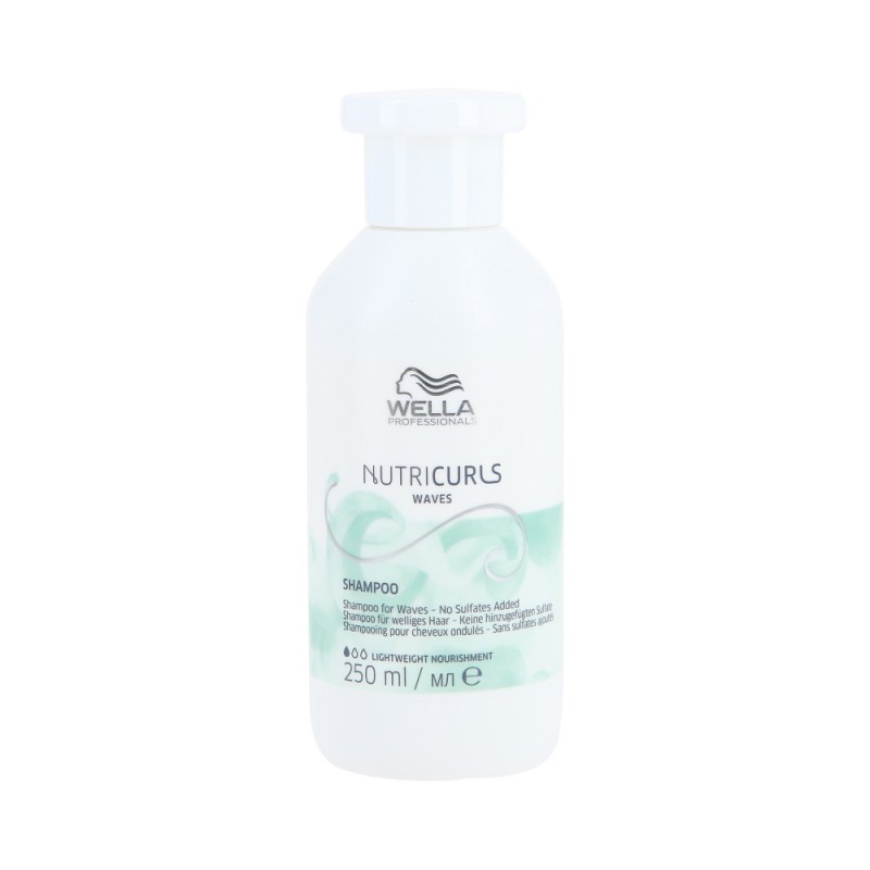 Wella shampoo Nutricurls is bedoeld voor de verzorging van golvend haar. De delicate formule verzwaart het haar niet, maar maakt het licht en elastisch. Bovendien bevat de shampoo geen sulfaten. Zoals alle producten uit de Nutricurls lijn bevat het Nourish -In Complex.
