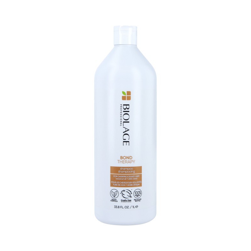 Heb je extreem beschadigd haar door oplichtende behandelingen? Heeft het geen glans en leven meer? De Biolage Bond Therapy lijn, verrijkt met kokosolie en citroenzuur, herstelt de verbindingen in extreem beschadigd haar. Het resultaat is vernieuwd, glad, glanzend en gezond haar. Bond Therapy shampoo is ook ideaal voor haar dat extreem beschadigd is door frequente chemische behandelingen. De ultra voedende formule, verrijkt met kokosolie en citroenzuur, voedt het haar terwijl het de haarbanden versterkt. Het reinigt het haar op milde wijze en maakt het zacht, gezond en makkelijk te stylen. De sensuele textuur en symbolische aroma's van Bond Therapy producten maken van de dagelijkse verzorging een spa-ritueel.