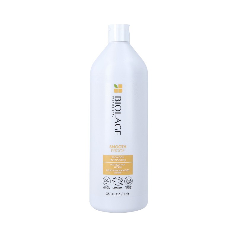 Biolage Smoothproof shampoo geeft het gladgestreken effect aan het haar. Fijne en aangename textuur, lichte formule, geeft controle over kroes en krullend haar. De Camelina zaadolie hydrateert het haar, maakt het glad, zacht en natuurlijk om aan te raken. Het wordt ook aanbevolen voor de verzorging van gekleurd haar.