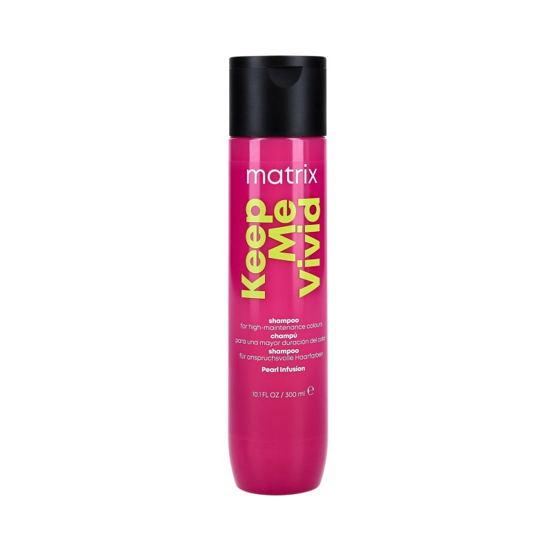 Matrix Keep Me Vivid shampoo wordt gebruikt om gekleurd haar te verzorgen, vooral in intensieve tinten. De Matrix Keep Me Vivid formule verlengt de vitaliteit van de kleur tussen twee kleurprocedures in. De shampoo is sulfaatvrij en kan dagelijks worden gebruikt.