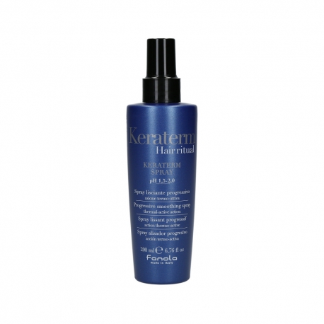 Fanola Keraterm Hair Ritual thermal active action spray for unruly hair with a tendency to frizz. Thermoactive formula activated by heat generated by styling appliances. Recommended for use before hair straightening or after permanent straightening.