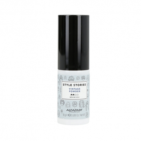 Style Stories powder from Alfaparf for styling any hair type. Adds splendid texture and a matte finish. Recommended for artsy, messy styles. Very easy application.