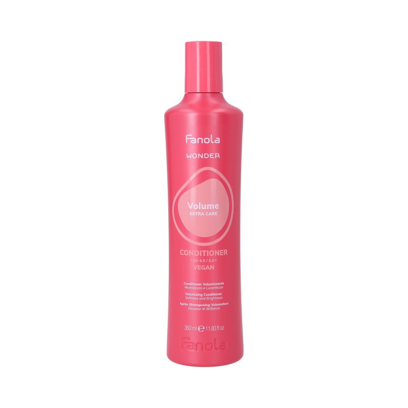 Conditioner die het haar meer volume geeft, verrijkt met panthenol, die bij toepassing op het haar de conditie verbetert, het kapsel meer volume geeft, hydrateert en versterkt. Het product verzwaart het haar, vergemakkelijkt het doorkammen, herstelt de dichtheid en geeft het haar veerkracht vanaf de haaraanzet. Fanola volumegevende conditioner versterkt het haar over de hele lengte en creëert een beschermende laag rond de haarschacht, waardoor het haar extra volume en veerkracht krijgt zonder het te verzwaren. Wonder Volume Extra Care producten hebben veganistische formules die extra verzorging bieden en het haar elasticiteit en vitaliteit geven. Het haar wordt niet verzwaard, waardoor het glad en glanzend blijft. Dit is een professionele en innovatieve cosmeticalijn die kappers en klanten ondersteunt bij haarverzorging en styling.